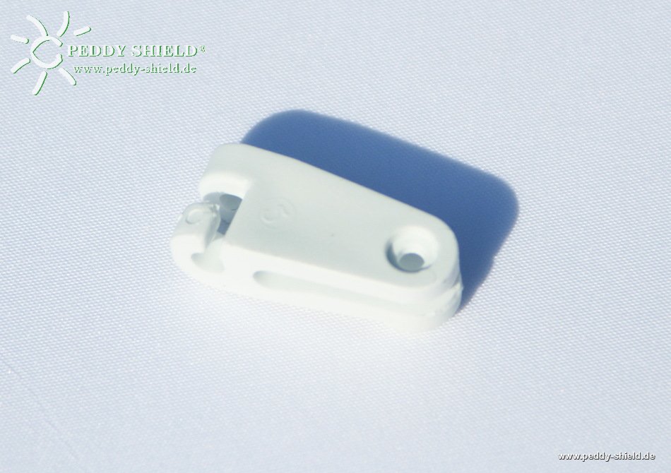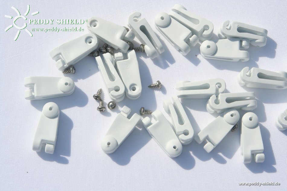 Runners voor alle maten zonnezeilen, waarmee u het zonnezeil eenvoudig zijwaarts kunt verschuiven over de staaldraad en het zonnezeil snel en eenvoudig van de staaldraad kunt verwijderen. De runners blijven bij het wassen aan het zonnezeil bevestigd.