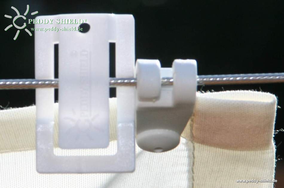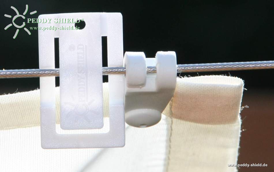 Stoppers om het zonnezeil in elke positie op de spandraad vast te kunnen zetten