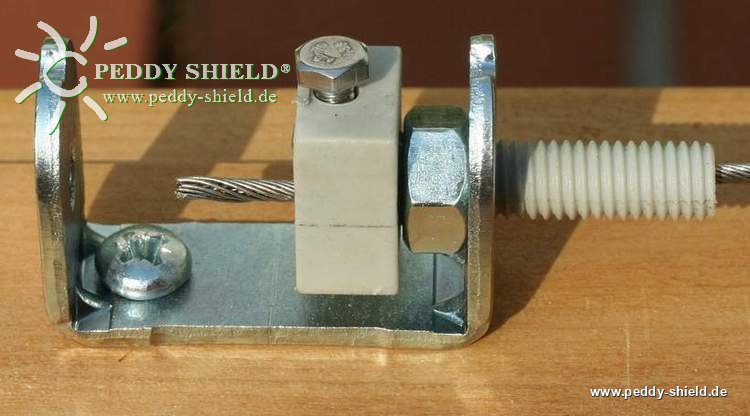 - 2 montagehoeken ter bevestiging aan het balkonplafond voor het spannen van de staaldraad