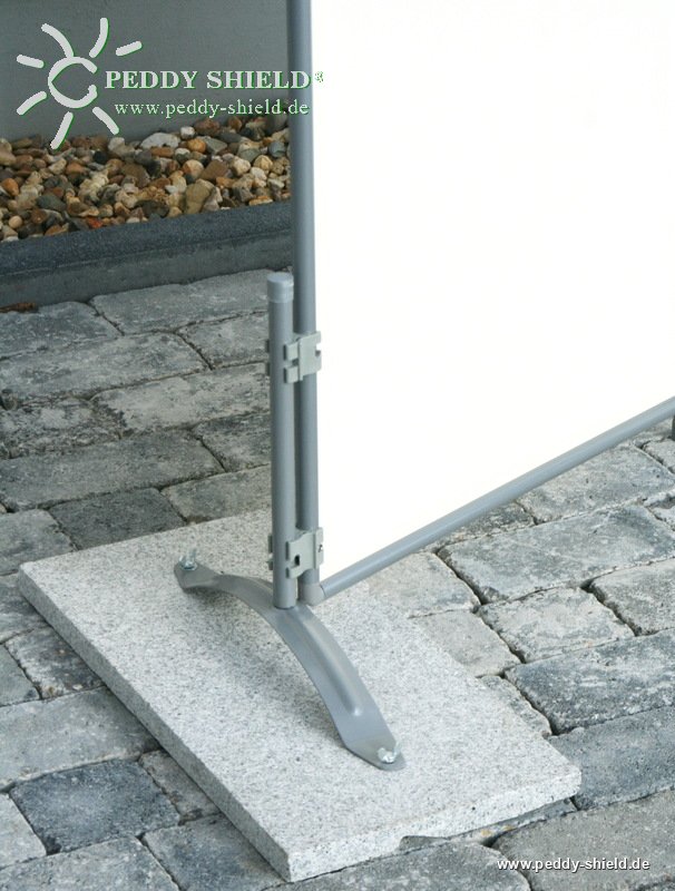 Voetplaat voor een losse opstelling van de paravent buiten of binnen. Vaste verbinding met de vloer mogelijk.