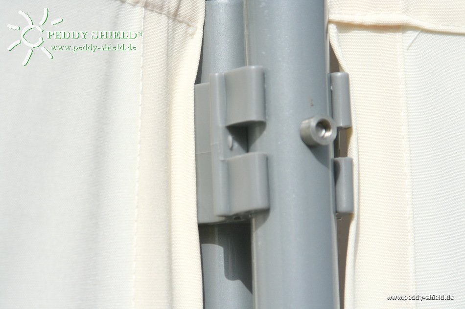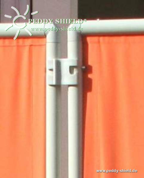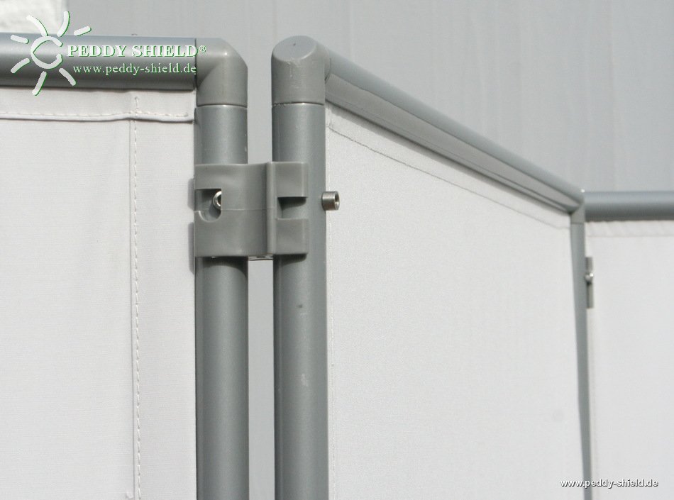 Middels de verbindingdsclips kan men paraventpanelen met elkaar verbinden, of een paraventpaneel verbinden met een staande buis.