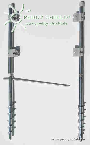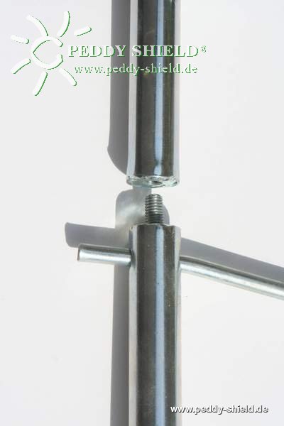 - indien het grondanker in het gras bevestigd wordt, kan men het grondanker dusdanig ver indraaien dat men met de grasmaaier over de verbindingsschroef kan gaan - men moet dan enkel de staande buis demonteren en vervolgens weer monteren wanneer men de paravent weer wil opstellen.