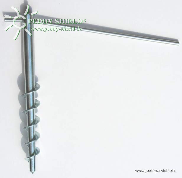 - Metalen staaf ter bevestiging van het grondanker in de grond - het grondanker in de grond drukken en vervolgens gelijkmatig met de klok mee de grond in draaien.