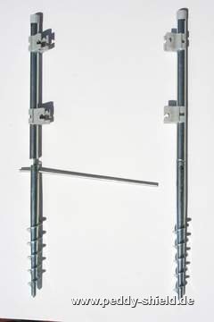 Grondanker voorzien van vastzetschroef 2x met verbindingsbuis en elk met 2 verbindingsclips voor de paraventpanelen.