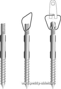 De trapeziumring aan de bovenkant van de dubbelschroef maakt het in- en uitdraaien van de runner op een staaldraad mogelijk, waardoor bv. een 3-punts zonnezeil snel gemonteerd kan worden (en er ook weer snel af gehaald kan worden).
